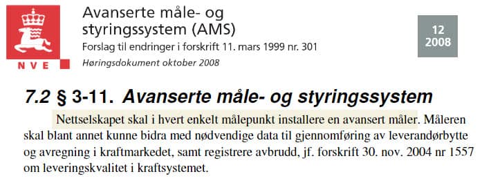 Finnes det egentlig et krav om å installere en «AMS-måler» i norsk forskrift?