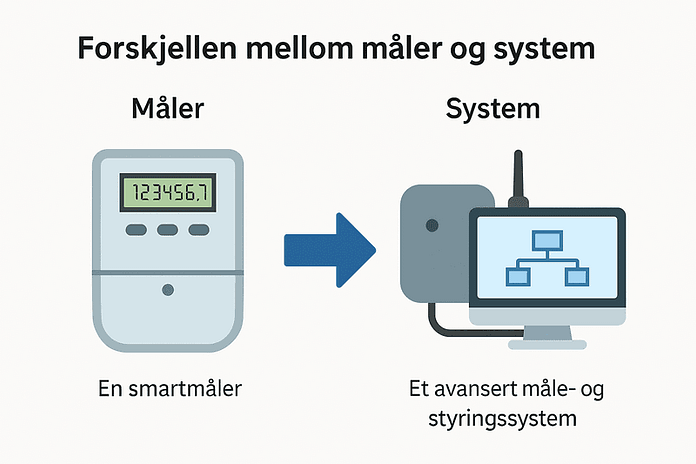 «I tekniske beskrivelser og veiledere omtales ofte en “smartmåler” som en måleenhet kombinert med en kommunikasjons- eller styringsmodul innenfor AMS-systemet.». Kilde: RME – Veileder til sikkerhet i AMS (2022). Tidligere versjon fra 2012.