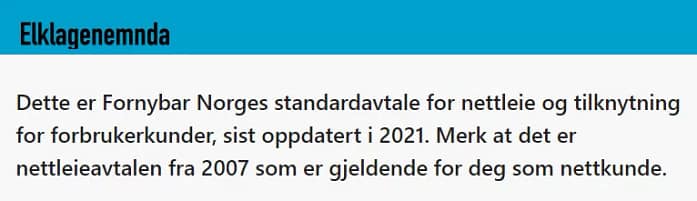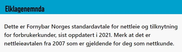 Fornybar Norge publiserte imidlertid en ny versjon av "Standardvilkår for nettleie og tilknytning for forbruker" den 16. desember 2021. Denne avtalen kan lastes ned her: [Last ned 2021-avtalen]