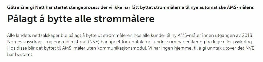 Glitre Energi Nett har nå en pågående maktmisbruk med trusler om stenging for 170 kunder som ikke har byttet måler. Nettselskapet møter nå motstand i domstolene. GEN påstår på nettsiden at de er pålagt å bytte måleren hos kunden. Nei Glitre, NVE har aldri pålagt nettselskapet å bytte måleren. Hva er det med disse folkene som jobber i nettselskapet. De klarer ikke å gjøre noe riktig.